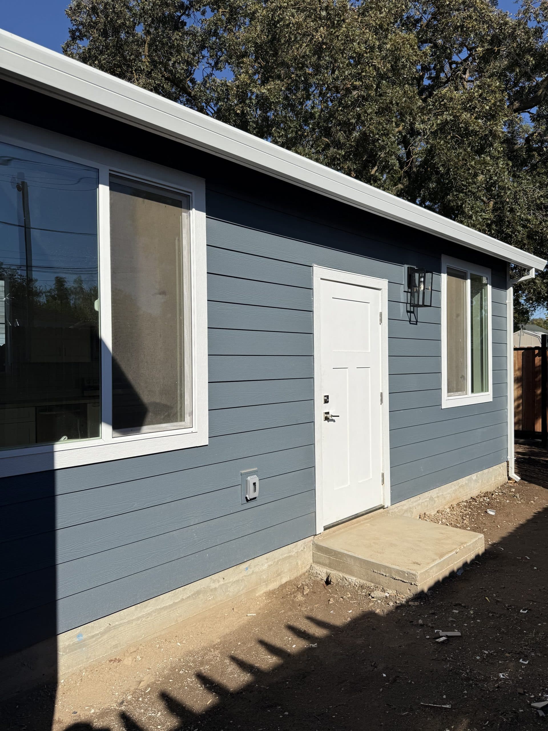 This 637 sq. ft. ADU features 1 bedroom and 1 bathroom with modern blue siding and private alleyway access. Its open layout, large windows, and clean design make it perfect for guests or rental income. A stylish, efficient home built for comfort and convenience.